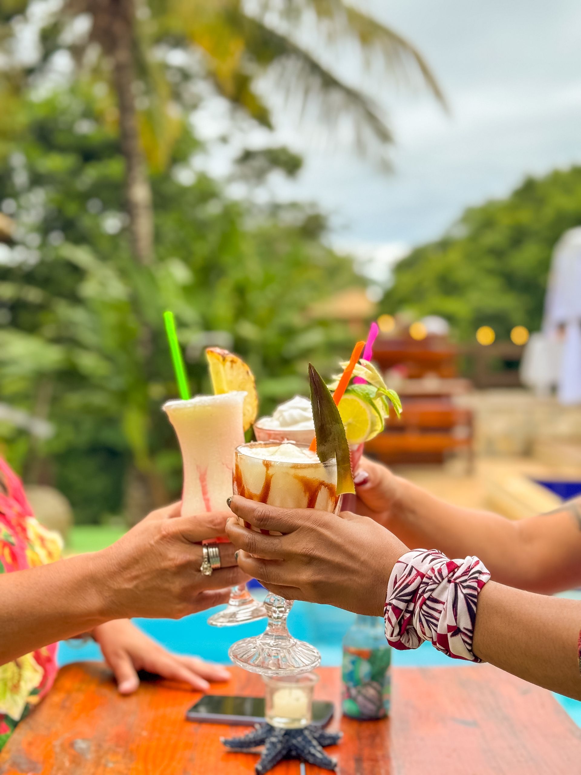 Oferecemos deliciosos petiscos à beira da piscina, preparados para combinar com o ambiente acolhedor da pousada, proporcionando momentos de prazer gastronômico. Nossos drinks exclusivos são ideais para apreciar o pôr do sol ou relaxar à noite.